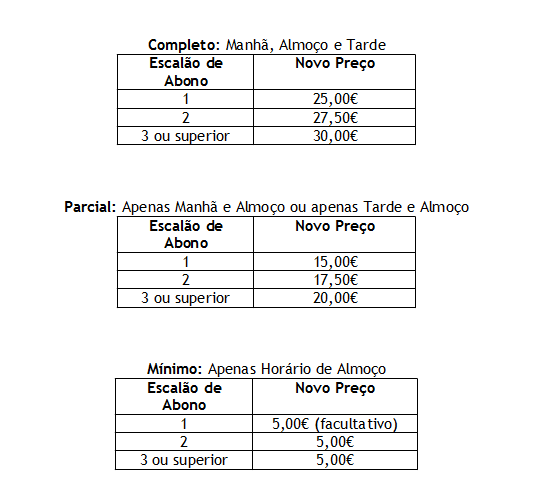 Período de Funcionamento: de 1 de Setembro a 31 de Julho – inclusive nos períodos de férias e de interrupção letiva.